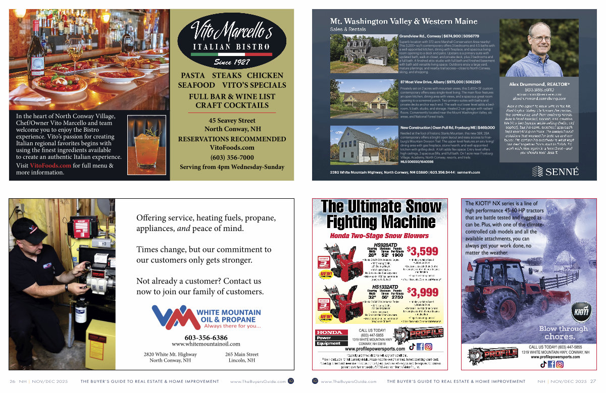 1319 WHITE MOUNTAIN HWY, CONWAY, NH www. profilepowersports. com www. TheBuyersGuide. com THE BUYER’ S GUIDE TO REAL ESTATE & HOME IMPROVEMENT